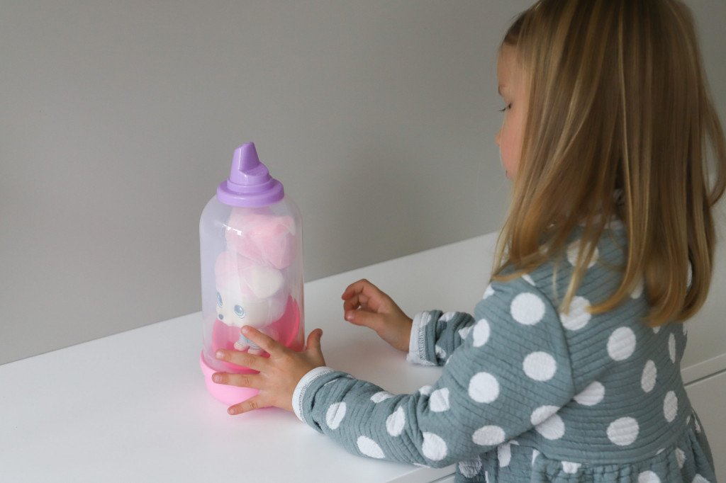 - Jetzt kannst du die Flasche komplett öffnen und dein Pet herausholen.