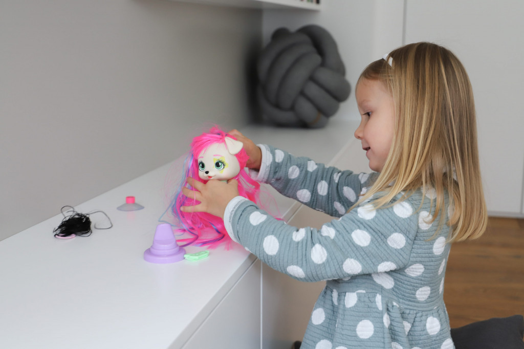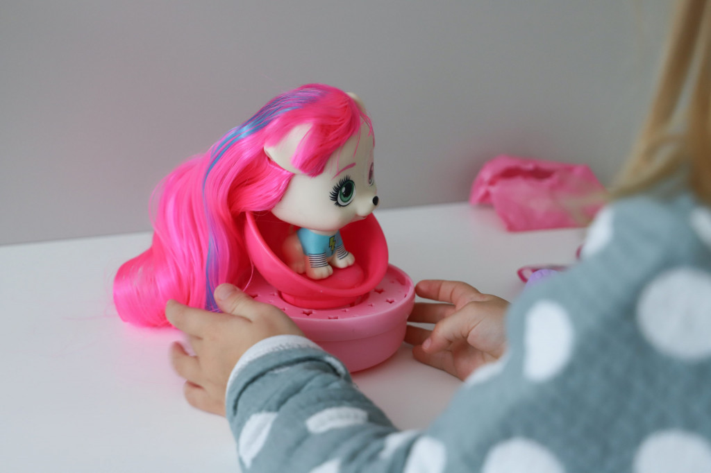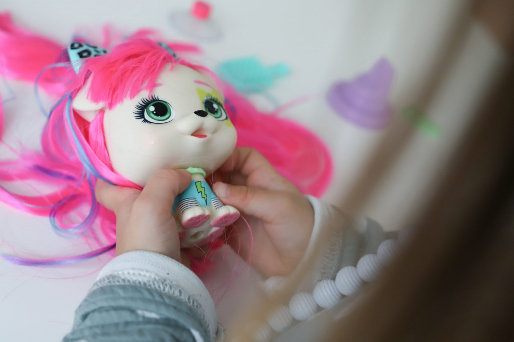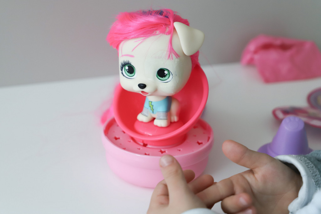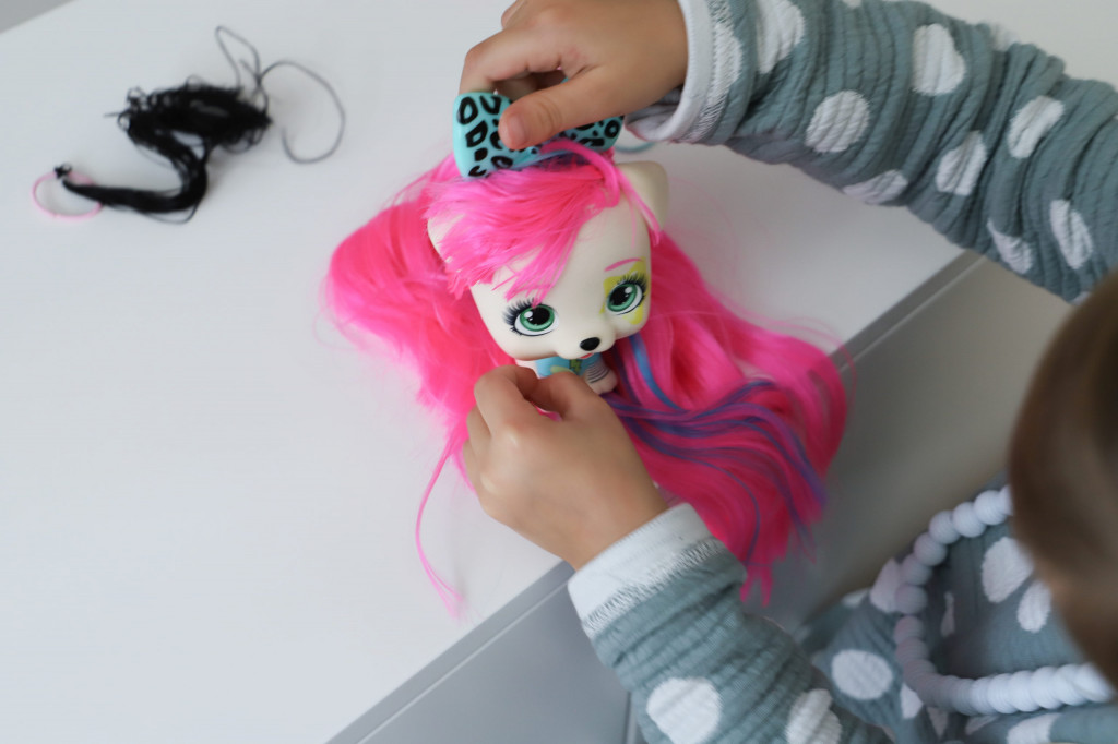 Unser geliebtes VIP Pet heißt Gwen und hat knall Pinke Haare, deren Styling Möglichkeiten durch die Länge natürlich endlos lang sind. Gwen bringt auch ihr spezielles Zubehör mit. Sie hat eine Schleife, ein Halsband, ein Haargummi, ein schwarze Haarsträhne, eine Spange, sowie eine Haarbürste im Gepäck.