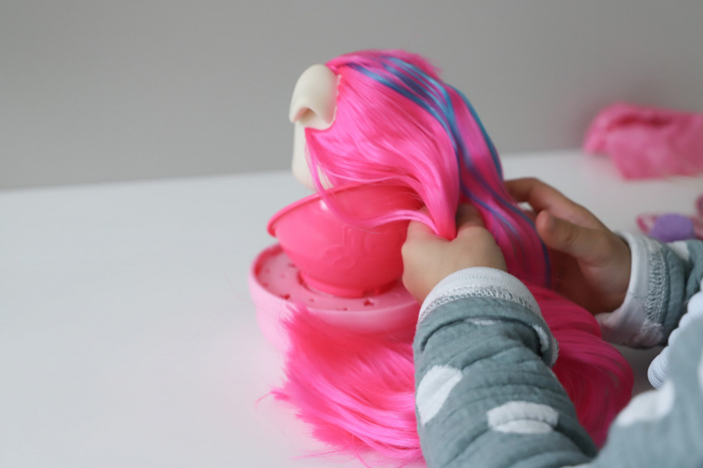 Wie durch den Wasserzauber das bunte, lange Haar zum Vorschein kommt, das zeige ich euch gleich.