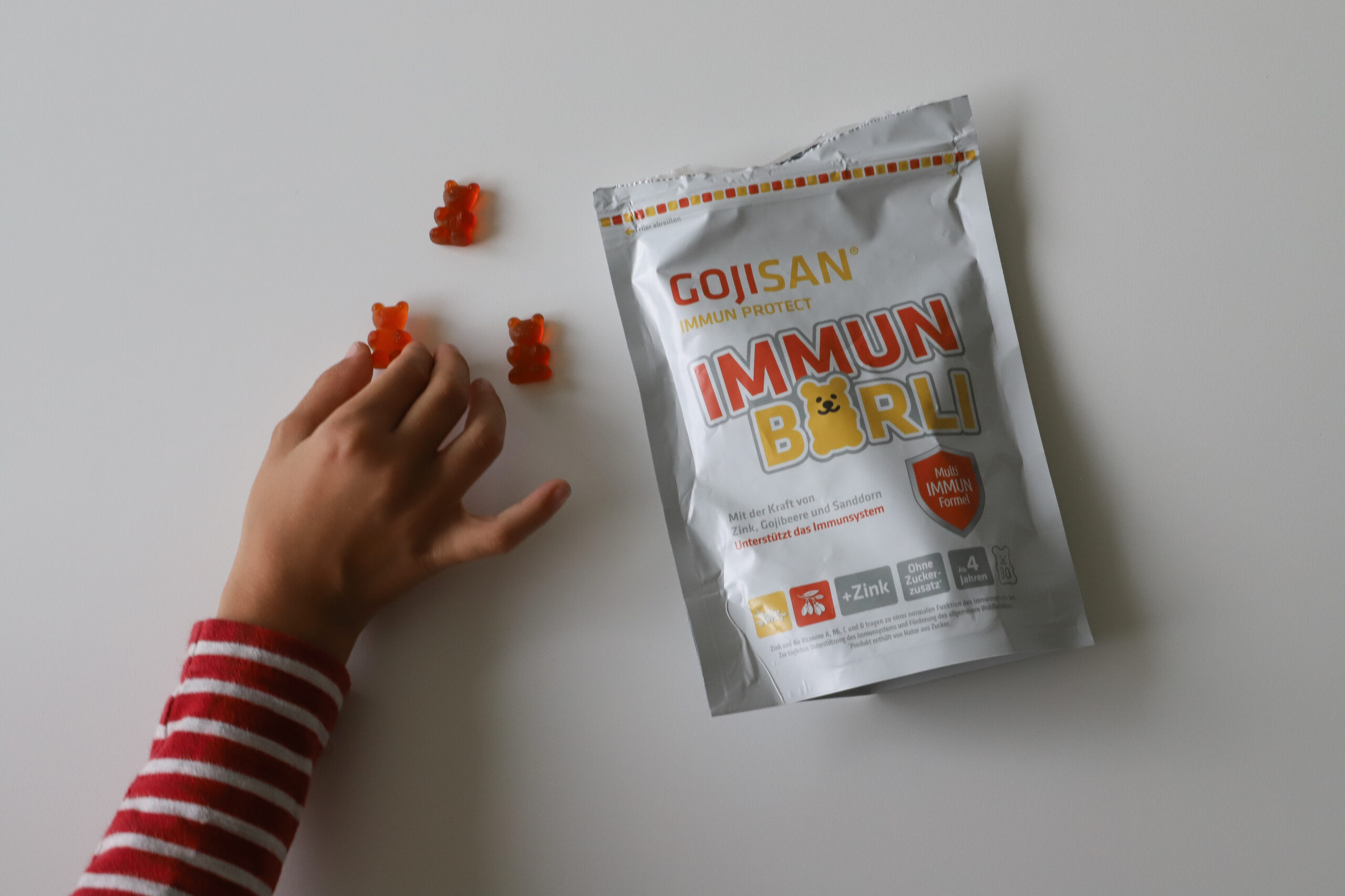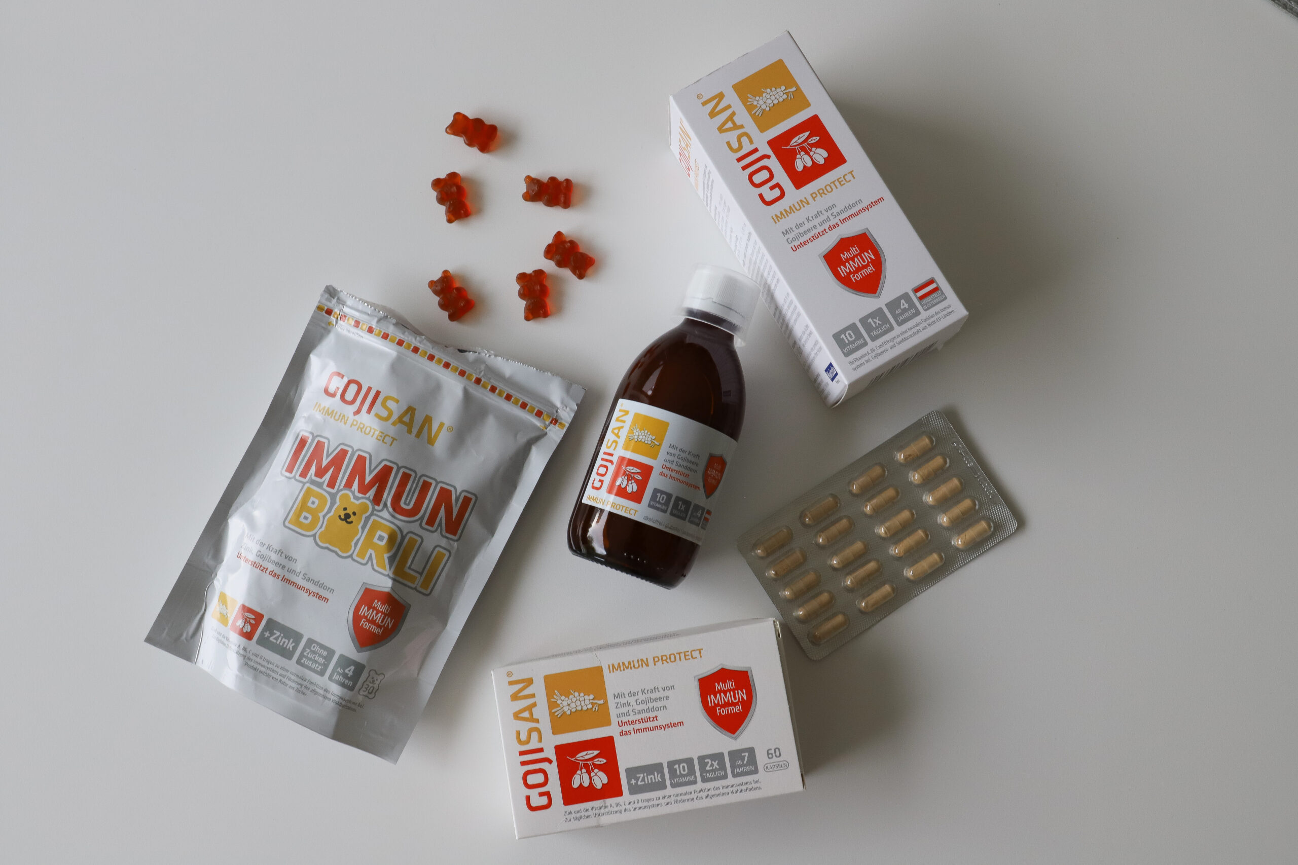 Perfekt für die ganze Familie gibt es die Produkte als Saft (GOJISAN Immun Protect Saft) oder als Vitaminbärlis (GOJISAN Immun Protect Bärli) für Kinder ab 4 Jahren, aber auch als Kapseln (GIJOSAN Immun Protect Kapseln) für Kinder ab 7 Jahren. Die Bärlis und der Saft schmecken wohltuend nach Orange und haben keinen Zucker beigesetzt.